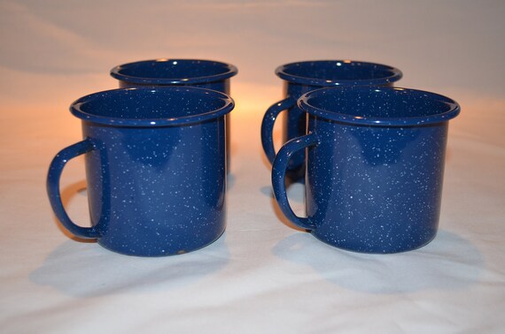 Dark Blue Enamelware Coffee Mugs Set Of 4 Spattered With Etsy