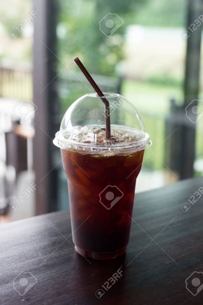 Ice Americano Coffee In Plastic Glass On Wooden Table With Indoor Warm Lighting In Relaxing Concept Stock Photo Alamy