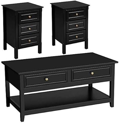 Amazon Com Yaheetech 3 Piece Living Room Wood Table Set Lift Top Coffee Table W Hidden Compartment 2 End Table W Tall 1 Drawer And Bottom Storage Shelf Black Furniture Decor