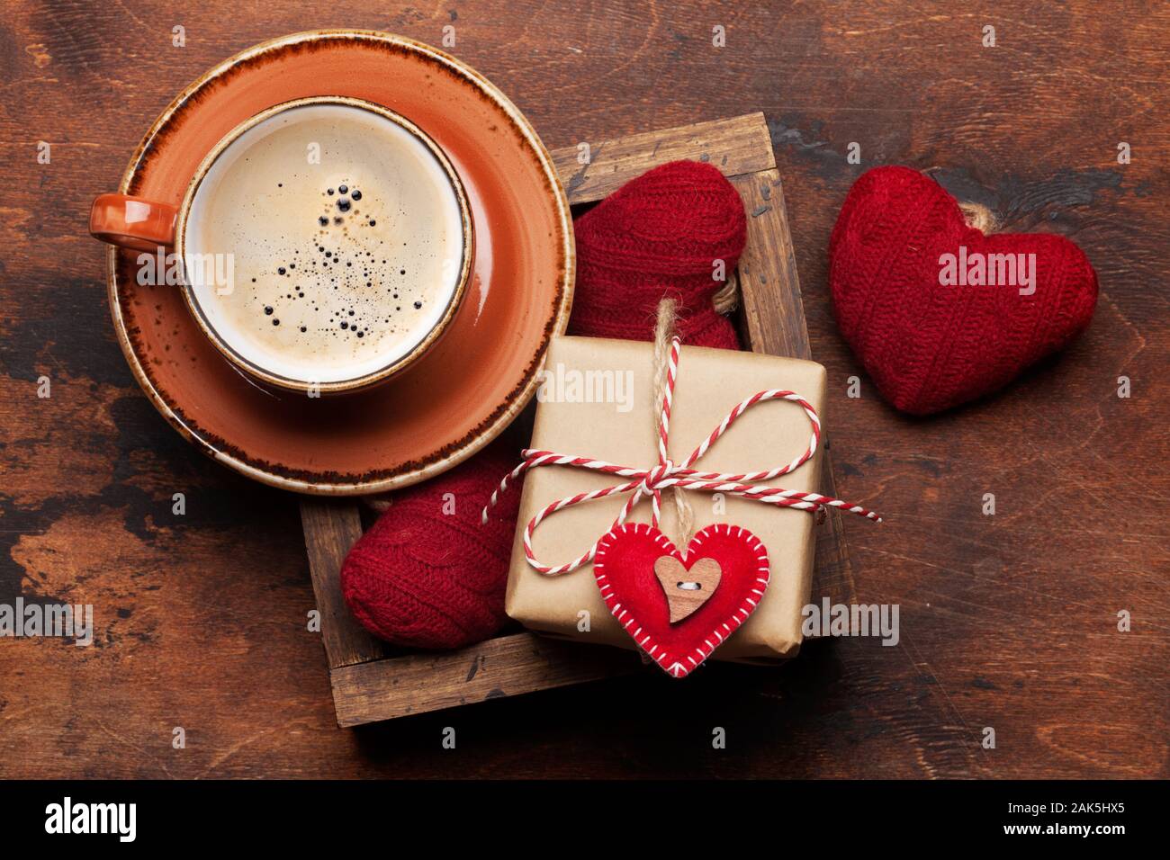 Morning Breakfast For Valentines Day Cup Of Coffee Gift Box And Red Hearts Top View Stock Photo Download Image Now Istock