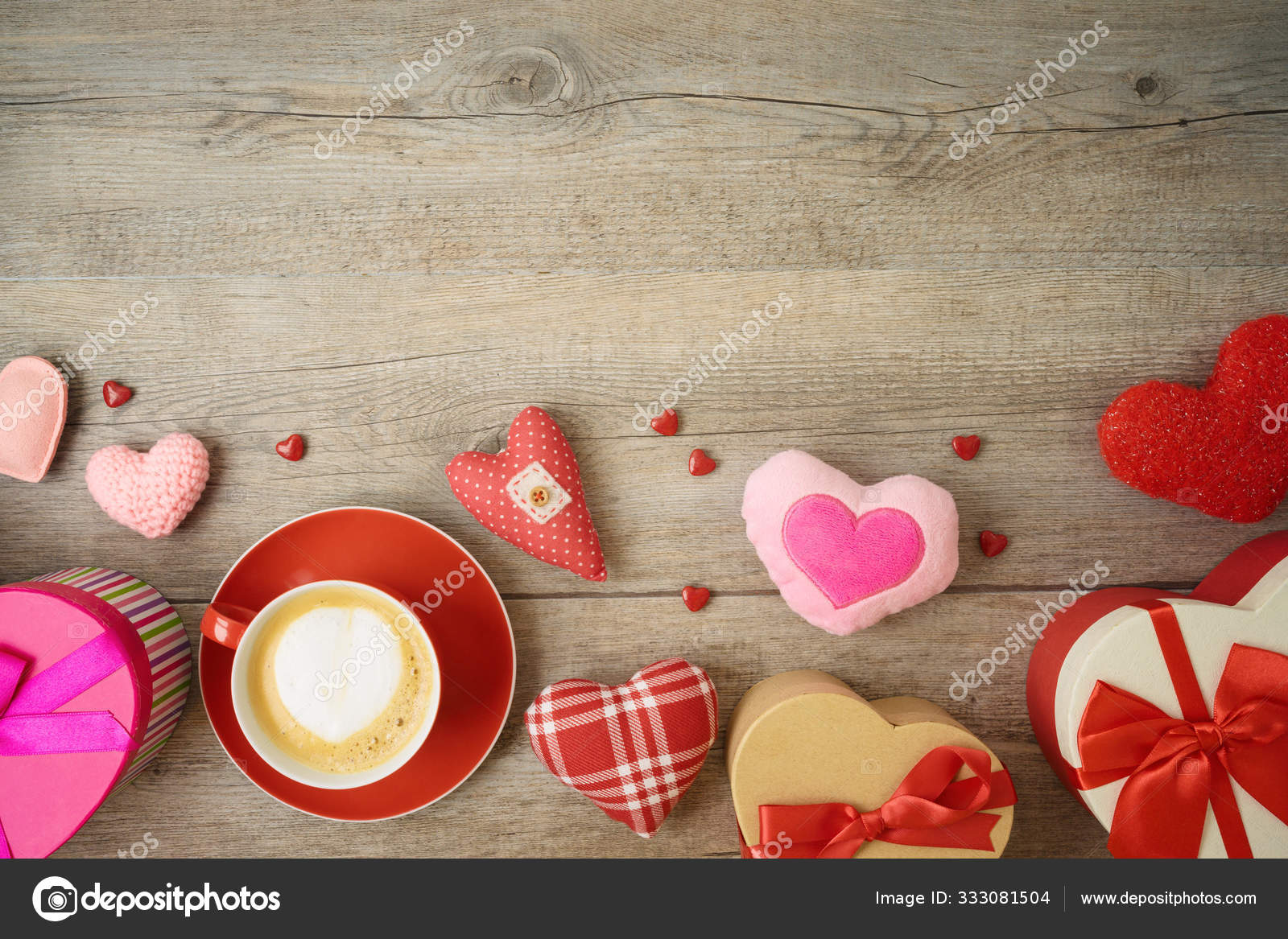 Valentines Day Card With Gift Box And Coffee Cup Stock Photo By Karandaev