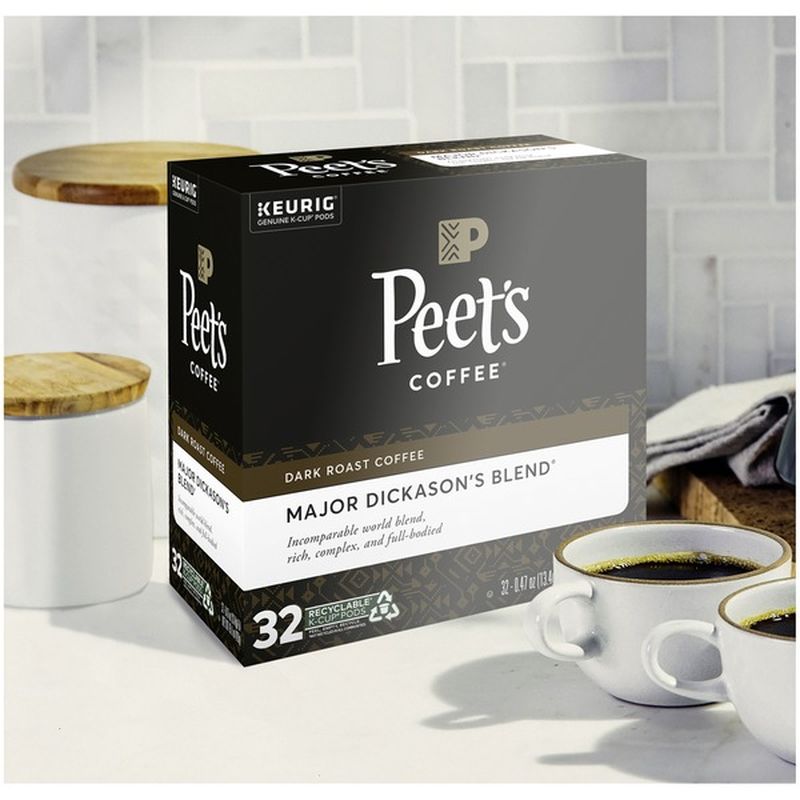 Peet S Coffee Major Dickason S Blend Dark Roast K Cup Coffee Pods 75 Count Coupon Subscribe Save Deal. Since alfred peet opened peet's very first coffee bar over 50 years ago, peet's has been dedicated to crafting the perfect cup of coffee. The original craft coffee.™ since 1966. The same commitment, same care, and same coffee, packaged for a convenient, quick cup. The brand gets involved in every step of its coffee making process, which includes partnering with farmers and roasting by hand. The same commitment, same care, and same coffee—now in recyclable packaging. Peet's coffee is synonymous with california cool with its rich history dating back to 1960s. Founded in 1966 by alfred peet in berkeley, california, peet's introduced the united states to its darker roasted arabica coffee in blends including french roast and grades appropriate. See actions taken by the people who manage and post content. Is responsible for this page. Since alfred peet opened the doors to his first. After completing this order, begin a new transaction to purchase other desired items. This is a terrific way to sample an array of flavors and brands, especially for coffee newbies trying to figure. Any price and availability information. Get it delivered w/ the peet's app. Brew these exclusive flavors such as major.