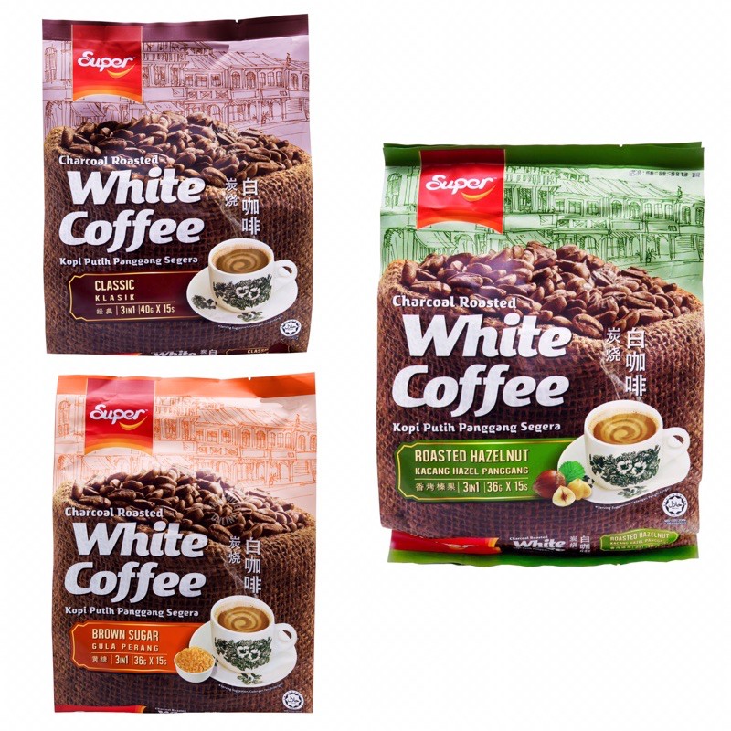 Super 3 In 1 Instant Charcoal Roasted White Coffee Classic Brown Sugar Hazelnut Shopee Indonesia